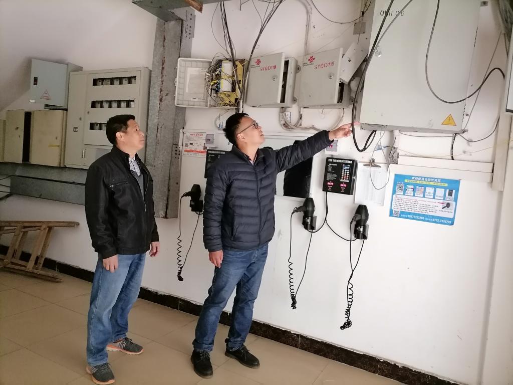 (检查组对学生宿舍用电安全进行专项检查)