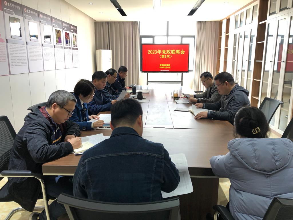 2月25日,教育科学学院于明德楼410会议室召开新学期党政联席会议。学院全体领导班子成员,办公室主任,副主任参加此次会议。会上,该院党委书记崔海波,院长陈庆文传达了2023年春季期开学工作协调会会议精神,并对新学期开学工作进行研究部署。2月26日下午,该院于我校东校区明德楼学院会议室召开习近平总书记在学习贯彻党的二十大精神研讨班开班式上的重要讲话精神专题学习会,崔海波组织学院领导班子成员及全体教职工集体学习。