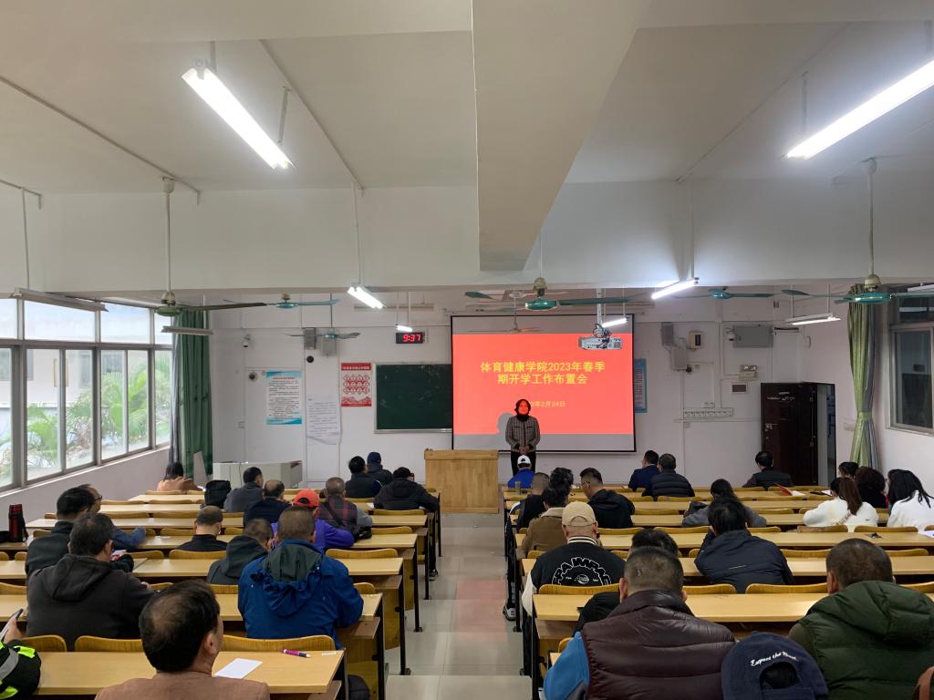 2月24日,体育健康学院召开2023年春季期开学工作布置会,学院全体领导班子出席会议,全体教职工参加会议,会议由院长蒋宁主持。会议对上一年学院工作取得的成就做了简单回顾,并对学院的教学、科研、训练以及专业建设做了详细部署。
