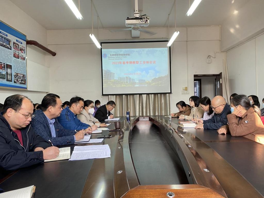 2月26日上午,商学院于东校区博学楼1-407会议室召开2023年春季学期全体教职工会议。该院领导班子及全体教职工参加。会议由该院党委书记管金标主持。会议总结了2022年度该院各方面工作取得的成效,并对新学期学院党委行政各项工作进行了部署。