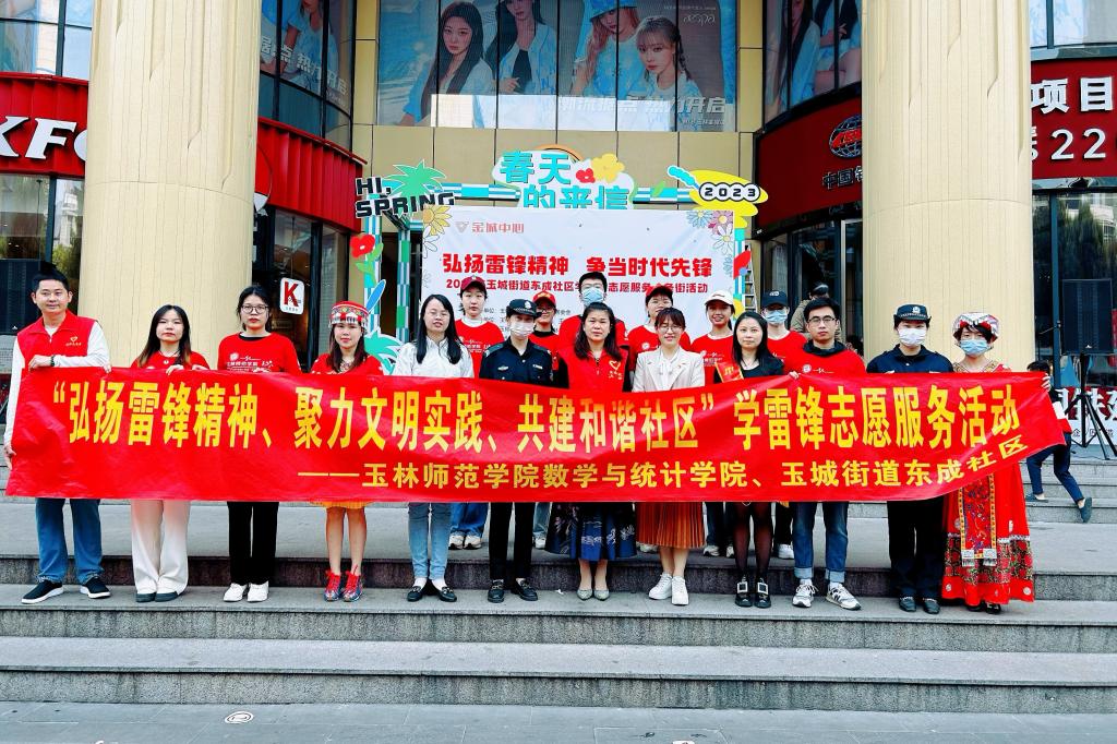 为深入学习宣传贯彻党的二十大精神,贯彻落实习近平总书记近日对深入开展学雷锋活动作出的重要指示精神,3月5日,第60个“学雷锋纪念日”之际,数学与统计学院联合玉城街道东成社区、玉林市城市管理监督局、玉林市中心血站、玉州区人民检察院、中国邮政储蓄银行玉林市人民东路营业所、码上素食、海音送茶志愿服务队等企事业单位、爱心团体在东成社区金城中心B馆门口开展“弘扬雷锋精神、聚力文明实践、共建和谐社区”学雷锋志愿服务一条街活动,突出“接地气、冒热气、强底气”,让弘扬雷锋精神入脑入心、见行见效。