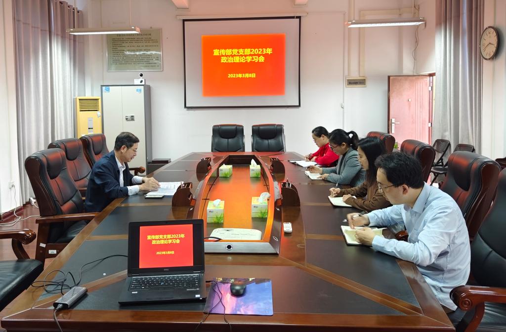 3月8日下午,宣传部党支部在行政楼413会议召开政治理论学习会。专题学习了习近平总书记在学习贯彻党的二十大精神研讨班开班式上的重要讲话精神。