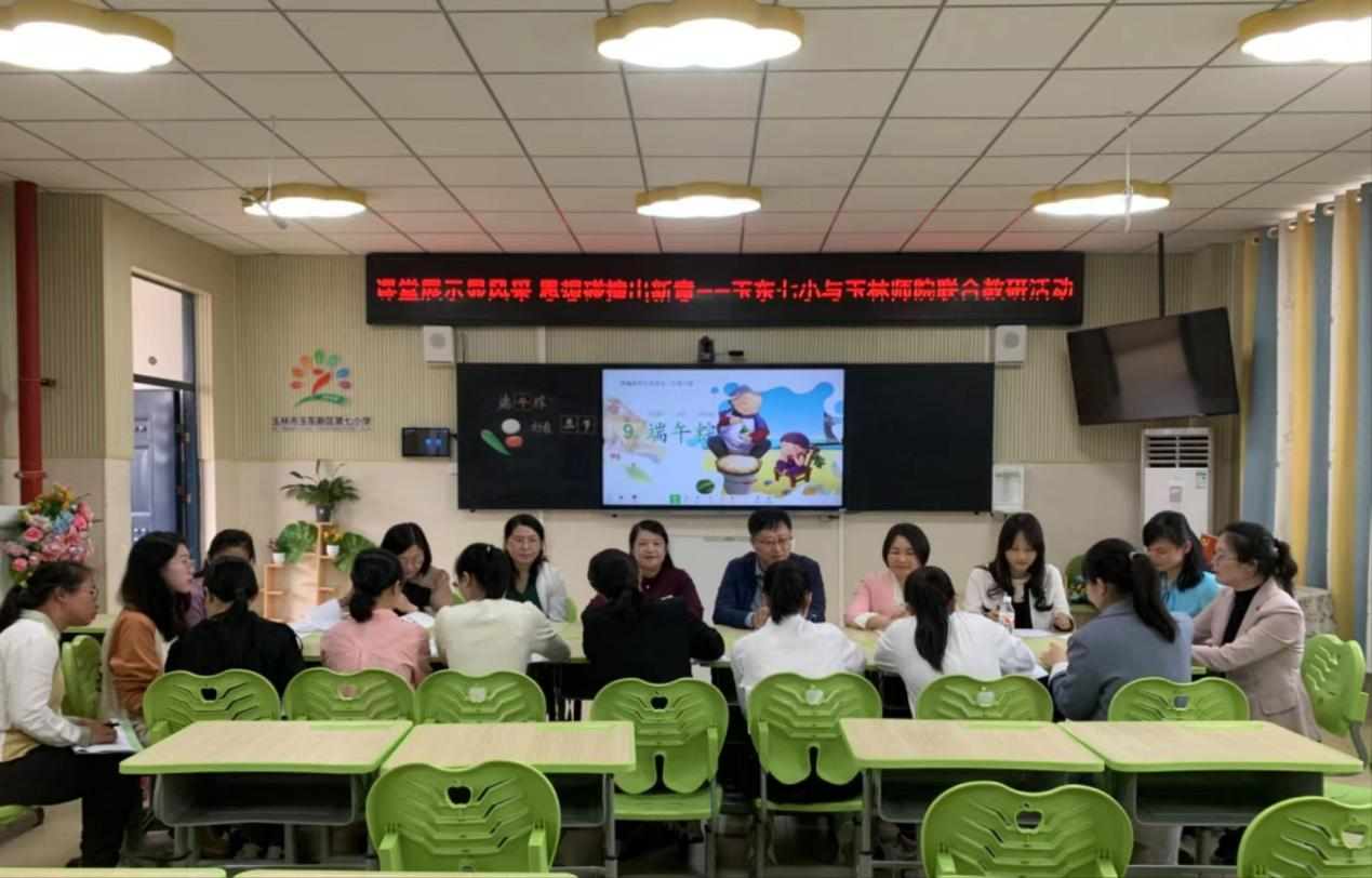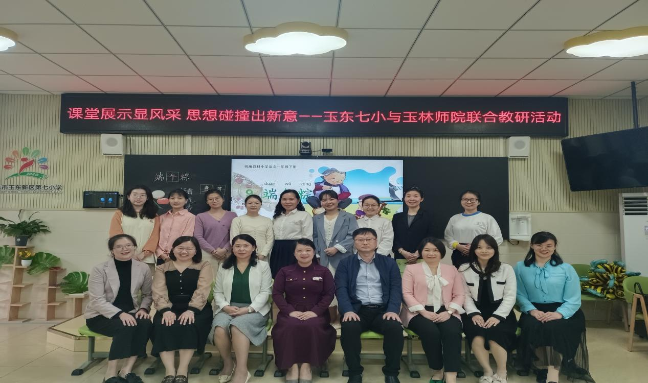 3月10日,教育科学学院与玉东新区第七小学于玉林市玉东新区第七小学开展英语、语文联合教研活动。玉东新区第七小学校长周佳、学校领导及全体语文、英语教师,教育科学学院副院长金康彪,该院教师及外国语学院教师代表参加此次联合教研活动。