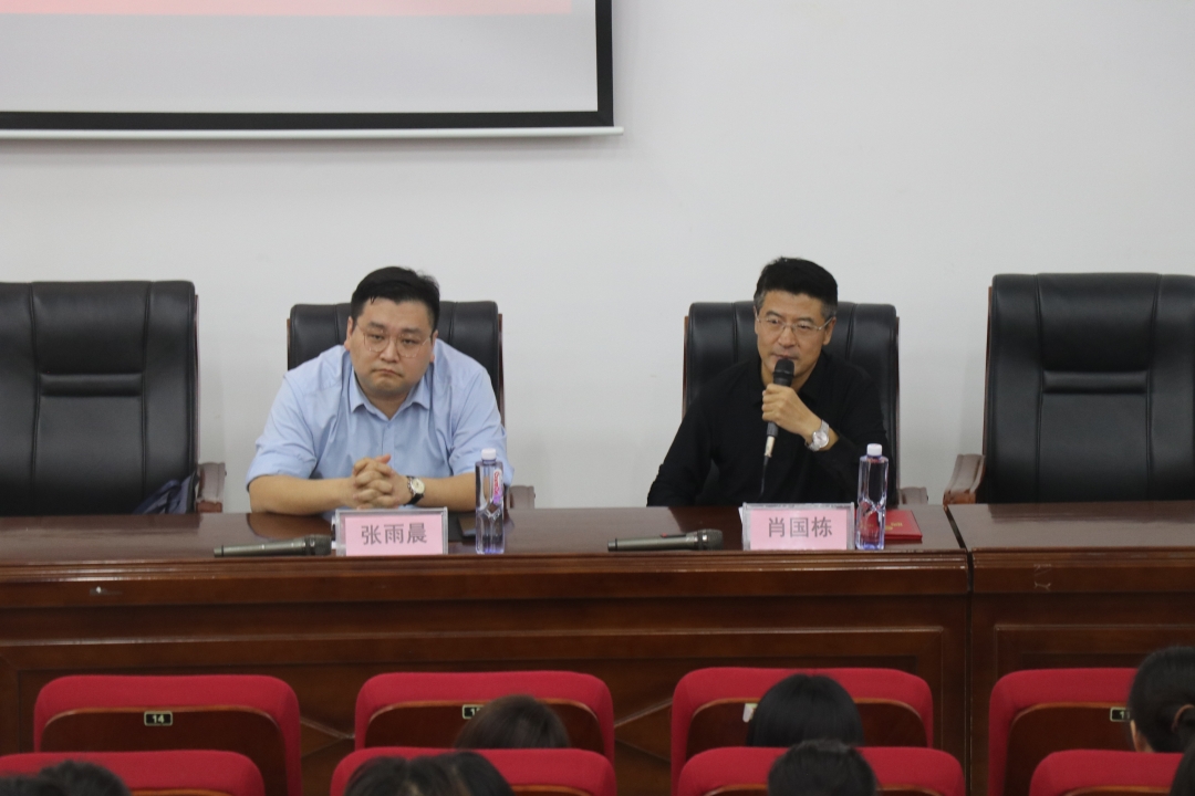 讲座上,肖国栋对优秀校友张雨晨的个人成就以及广睿奖学金进行简要介绍,并向张雨晨对学院的支持表示感谢。