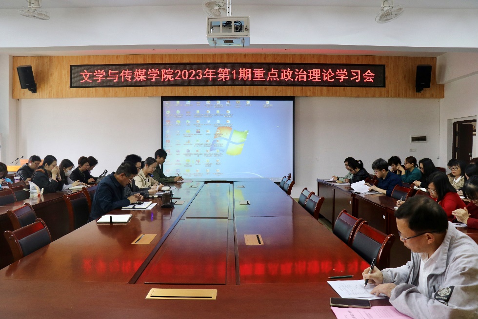 3月14日下午,文学与传媒学院在我校东校区至善楼309会议室召开2023年第1期重点政治理论学习会议。本次会议由该院党委书记邱冠主持,学院领导班子、党支部书记、副书记、系主任、教研室主任参加会议。