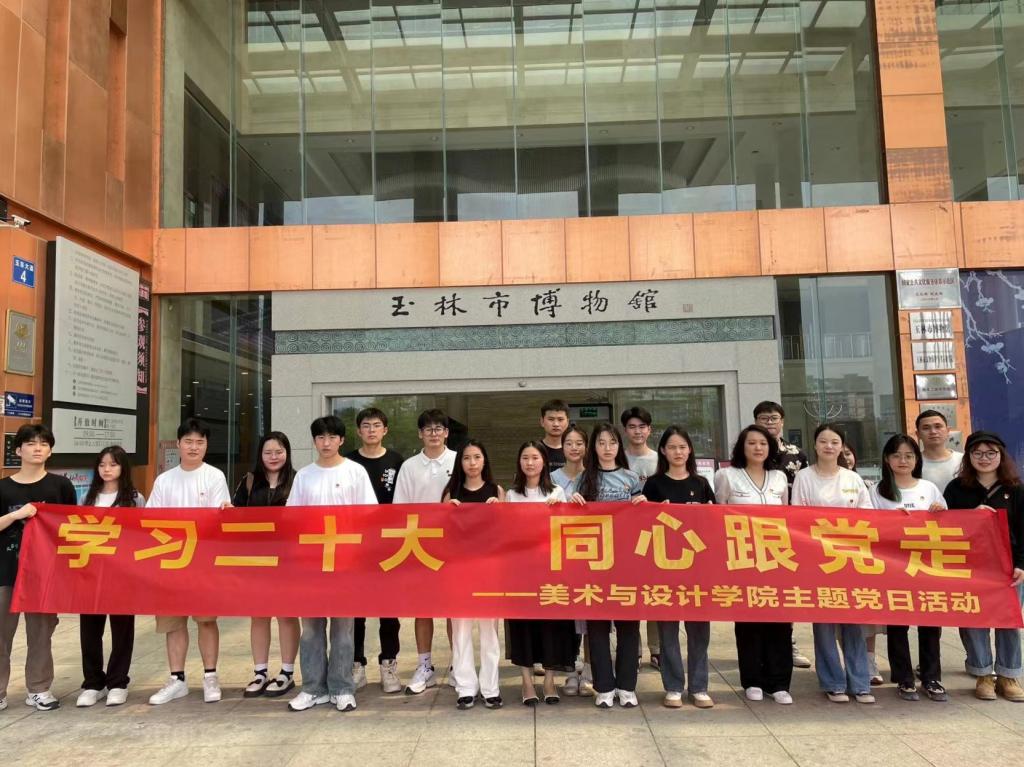 为深入学习宣传贯彻党的二十大精神,加强基层党组织建设,提升党员教育质效,3月23日下午,美术与设计学院组织教师党员、学生党员和入党积极分子代表赴玉林市党员教育基地开展 “学习二十大 同心跟党走”主题党日活动。