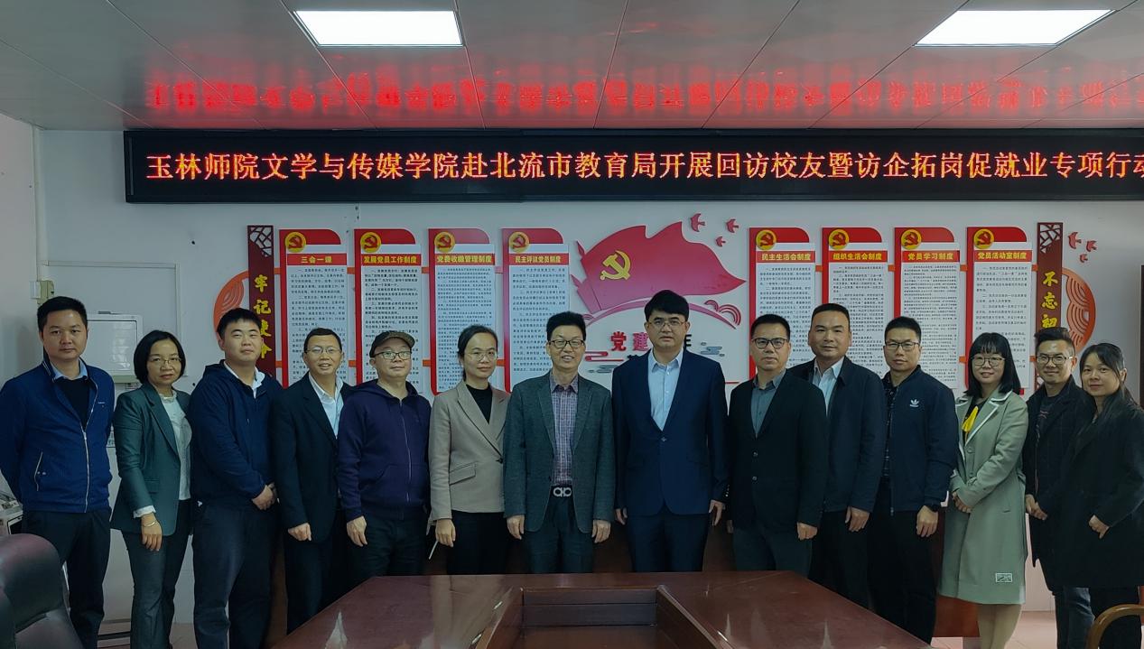 4月7日,文学与传媒学院党委书记邱冠、党委副书记梁丹、副院长郑立峰一行赴北流市教育局、北流永丰初中、北流市中等职业技术学校、广西三环集团、广西宏超工业有限公司开展回访校友暨访企拓岗促就业专项行动。北流市教育局副局长林俊宇、党鹏等领导热情接待并陪同考察。
