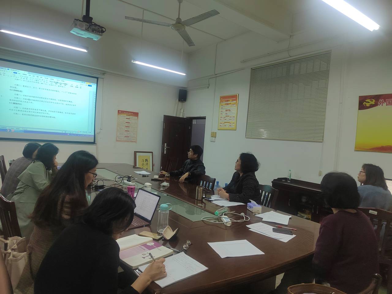 会上,专业负责人覃幼莲就目前完成的工作进行汇报,指出存在的问题与修改的方向、内容。沈燕琼指出,师范专业认证是学院今年的重中之重的工作,全体成员应高度重视,夯实责任,明确时间节点,完善自评报告以及支撑材料的收集和梳理。沈燕琼就自评报告的要求和支撑材料的具体要求、时间节点,进行全面梳理、细化。最后,各小组负责人分别就各负责的自评报告内容进行分析讨论,逐字逐句进行修改,推进专业认证工作的开展。