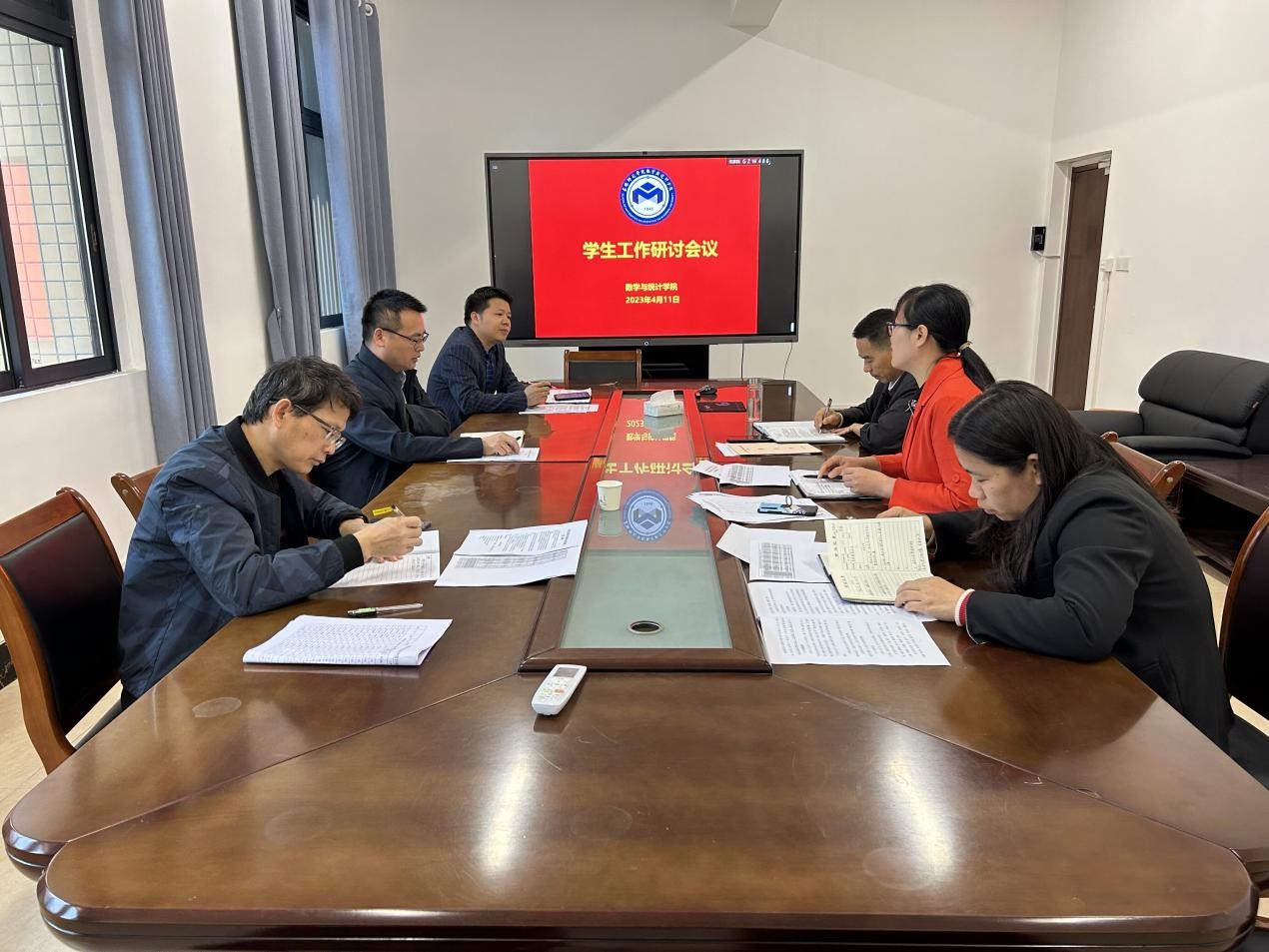4月11日上午,数学与统计学院在我校东校区新民楼C315室召开学生工作及学生党支部书记工作研讨会,学院党委书记庞伟等领导班子成员、学生党支部书记参加,会议由党委副书记李秀英主持。