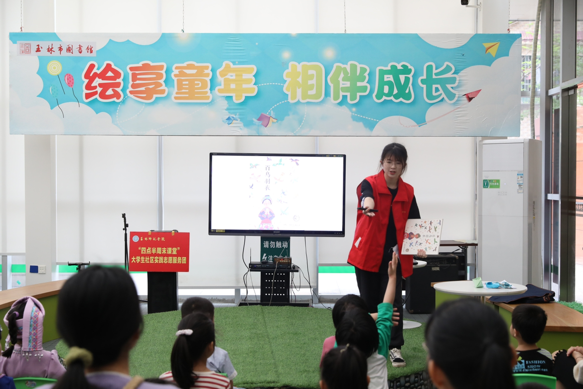 为传承和弘扬中华民族优秀传统文化,感受传统文化魅力,坚定文化自信,4月14日上午,文学与传媒学院联合玉林市图书馆在玉林市图书馆一楼阅读分享空间举办“弘扬传统文化,绘本启蒙童心”主题绘本故事会,学院学生志愿者、图书馆工作人员和19名儿童读者及其家长参与本次活动。