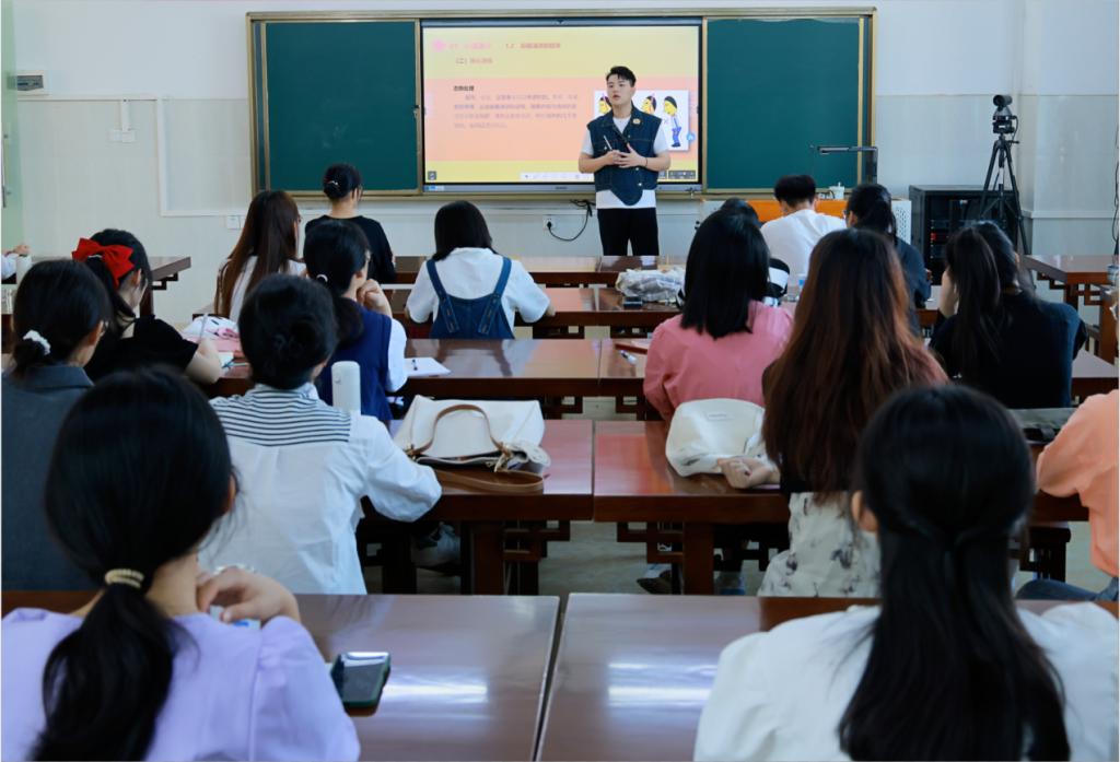 4月15日,陈露喜从口语表达能力、思维训练、沟通中的倾听与交谈、求职和自荐口语表达形式等方面进行详细授课,并结合学生在人际交流中普遍存在的问题进行分析,以现场学生互动交谈为例进行讲解,让学生进一步提高个人口头表达交际能力。