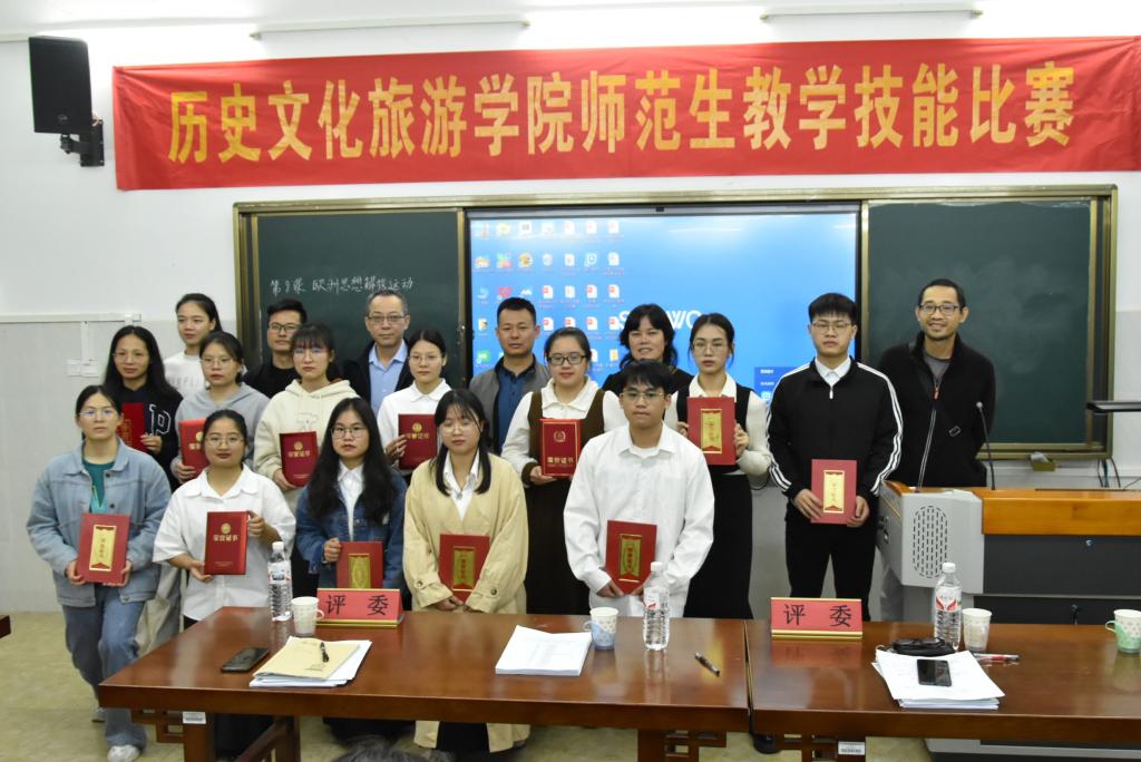 4月25日下午,历史文化旅游学院于我校东校区至善楼四楼悦学堂历史实训室举行2023年师范生教学技能大赛决赛。该院党委副书记兼副院长王世景、副院长唐彰元出席大赛,历史学教研室骨干教师担任评委,历史学专业学生到场观摩比赛。