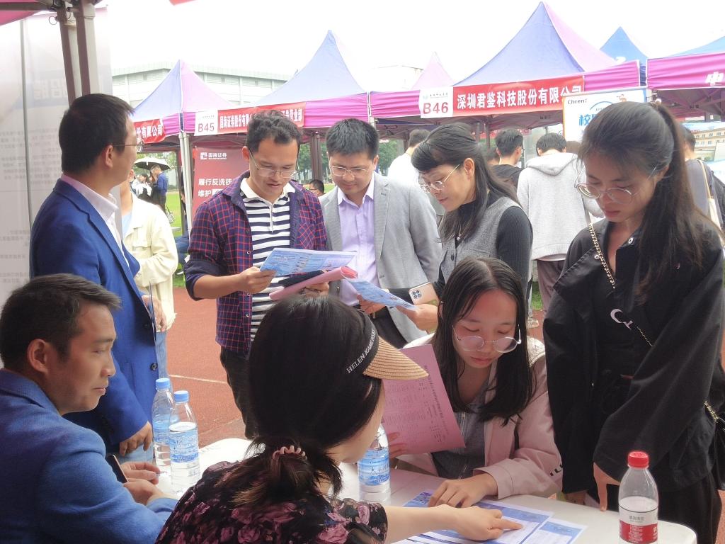 双选会现场气氛热烈。毕业生们详细询问岗位职责、福利待遇、发展前景等相关信息,并结合自身专业、优势和兴趣积极选择心仪的单位进行深入洽谈。