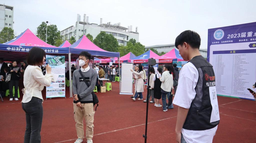 4月27日上午,由玉林师范学院主办,招生就业处、学工处、校团委及文学与传媒学院承办的“玉林师范学院2023届重点群体毕业生就业帮扶双选会”在我校东校区大田径场举行,文学与传媒学院党委书记邱冠带领班子成员、辅导员、班主任深入双选会现场指导毕业生就业工作。