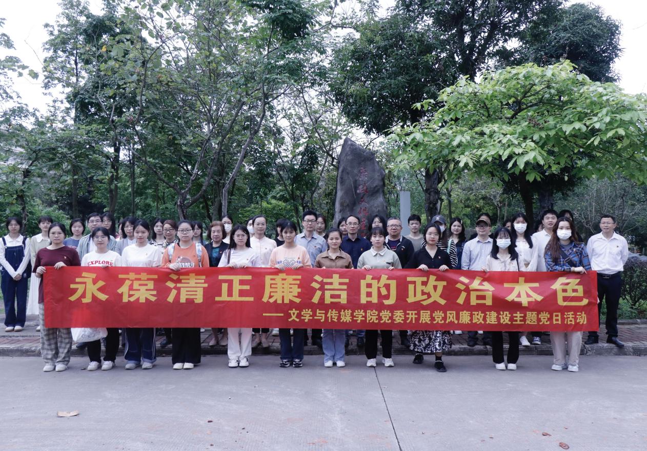 为深入学习贯彻党的二十大精神,推进清廉校园建设,提高广大师生党员的廉洁自律意识,4月28日上午,文学与传媒学院在学校廉政文化主题园开展“永葆清正廉洁的政治本色”党风廉政建设主题党日活动。学院党委书记邱冠、党委副书记梁丹出席活动,教工党员、学生党员代表参加活动。