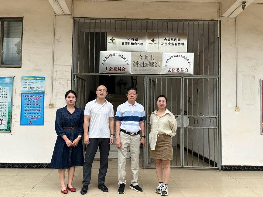 在实地考察当中,合浦县浦康花生油有限公司负责人带领王世景一行参观公司全自动化生产车间及电商直播销售基地。参观过程中,双方互相介绍公司的发展历史和学校的人才培养情况,分析互联网背景下电商直播发展形势,并围绕企联合人才校培养、实习就业基地建设等工作进行充分交流。