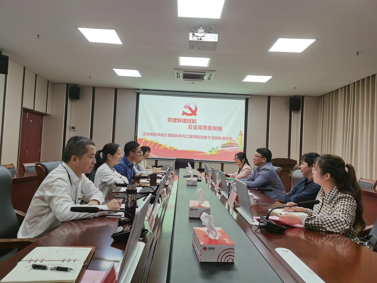 为扎实推进学习贯彻习近平新时代中国特色社会主义思想主题教育的深入开展,5月12日上午,计算机科学与工程学院党委书记方琨、副院长黄立和一行赴中国联通玉林分公司开展党建联建交流,中国联通玉林分公司副总经理郑允富等热情接待。