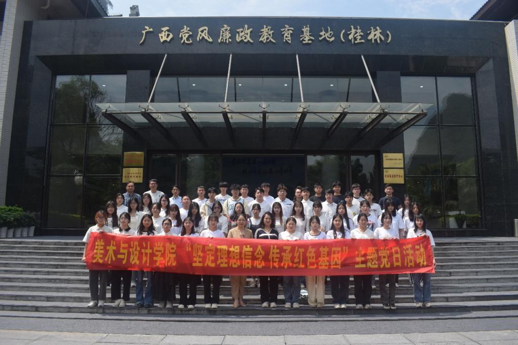 为传承红色基因,坚持铸魂育人,近日,美术与设计学院党委书记黄培英带领师生代表56人赴广西党风廉政教育基地(桂林)开展主题党日活动。