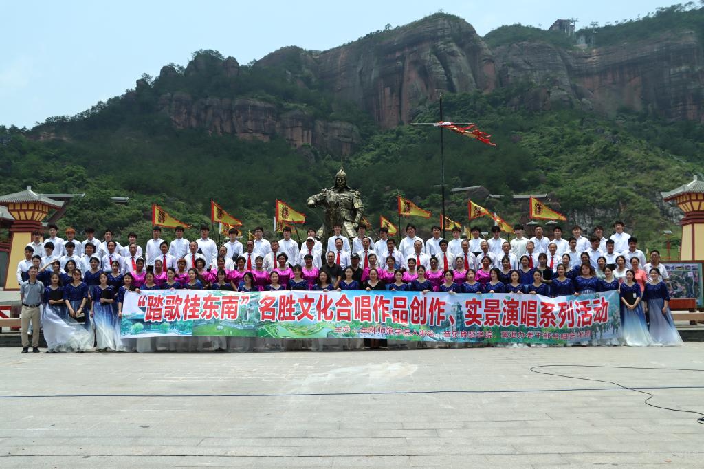 5月21日,我校人事处党委组织老干部合唱艺术团与音乐舞蹈学院在桂东南起义纪念馆、北流铜石岭举行踏歌桂东南名胜文化声乐作品创作、演唱活动(北流站)。