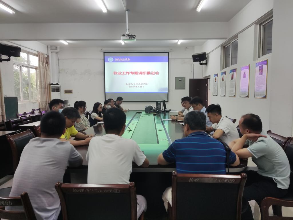 5月25日,物理与电信工程学院在我校东校区物电楼BG221会议室召开2023届毕业生就业工作专题调研推进会。该院党委副书记赵坚、副院长罗志荣、毕业年级辅导员、班主任以及相关专业教师参会,会议由赵坚主持。