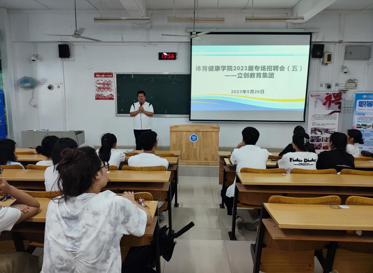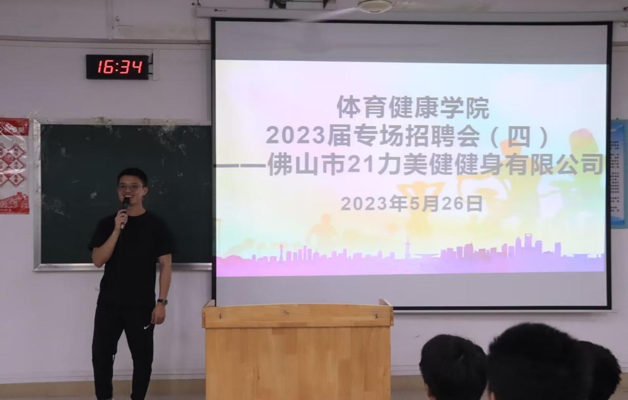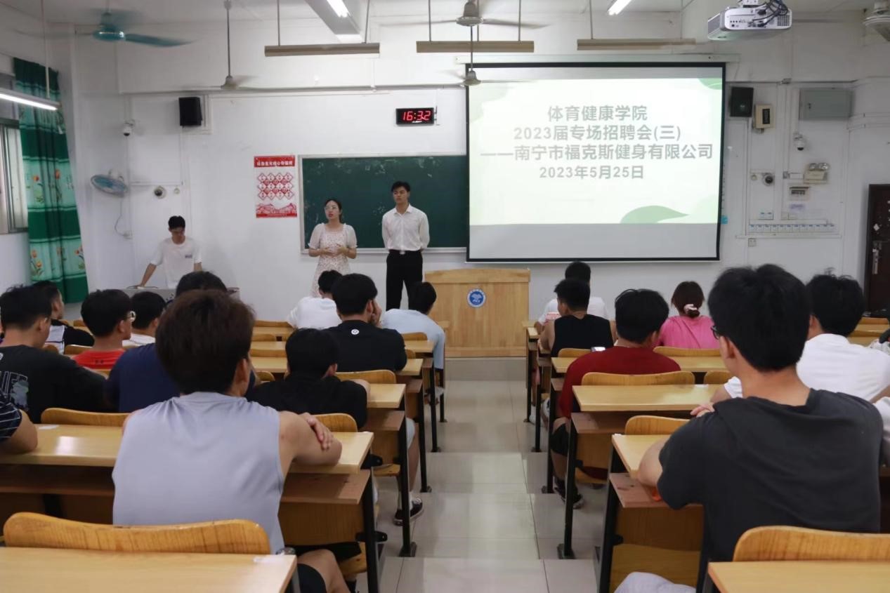 为帮助2023届毕业生更好地拓展职场,提高就业竞争力。近日,体育健康学院于我校东校区厚德楼2-203教室召开2023届专场招聘会,本次招聘会体育健康学院邀请了南宁市福克斯健身有限公司、佛山市21力美健健身有限公司、立创教育集团等多家企业公司参与。