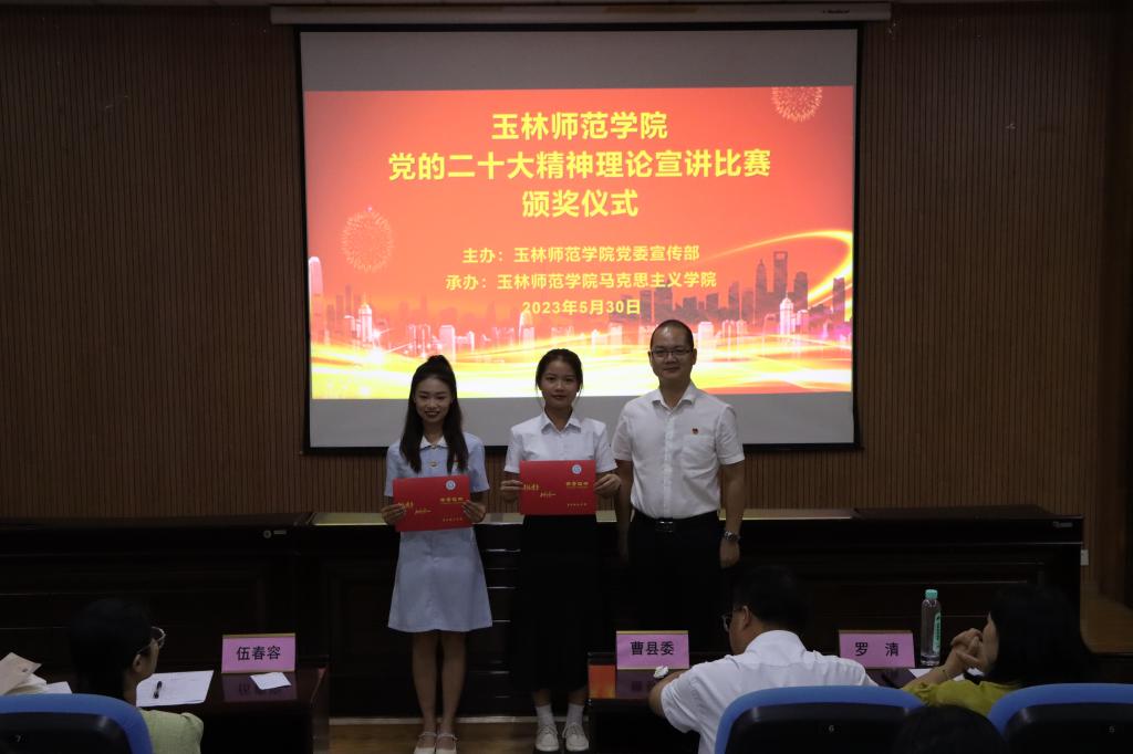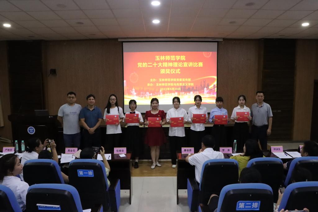 现场12名参赛选手从报告解读、壮美广西、教育实践等方面宣讲党的二十大精神,在比赛中充分展现当代青年学生听党话、跟党走,充满朝气活力、自信自强的一面。此次比赛共评出一等奖2名、二等奖3名、三等奖7名。