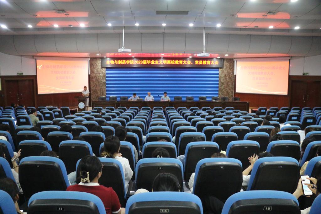 6月5日下午,生物与制药学院于我校东校区学术报告厅召开2023届毕业生文明离校教育大会、党员教育大会。该院党委专职组织员赖兴珲,党委副书记兼副院长蒋德旗,辅导员及2023届毕业生参加会议。