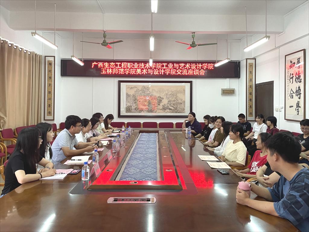 7月4日上午,广西生态工程职业技术学院工业与艺术设计学院党总支副书记李蕾鲜一行莅临美术与设计学院交流学习,并于我校东校区博学楼3-407会议室召开学习交流座谈会,该院党委副书记严耀燕、副处级专职组织员李婷、辅导员和学生代表参加座谈会。