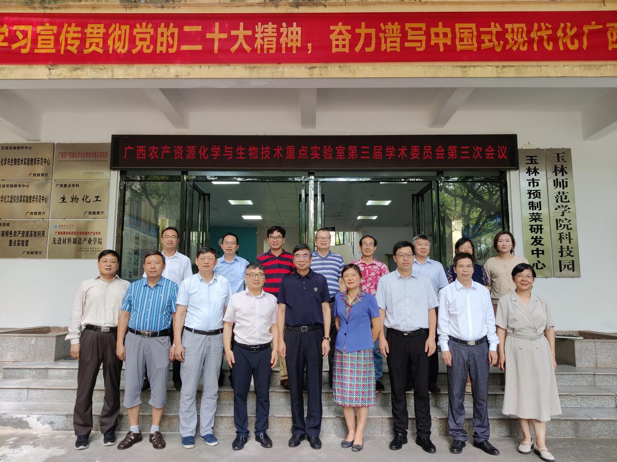 7月3日上午,广西农产资源化学与生物技术重点实验室第三届学术委员会第三次会议在玉林师范学院东校区格物楼BA321召开。会议由重点实验室学术委员会主任梁宏教授主持,梁伟江、童张法、叶兴乾、赵国华、杨定乔、谢建武等专家教授,学校副校长刘永建以及科研处、化学与食品科学学院、生物与制药学院相关领导、重点实验室研究骨干等30余人参加会议。