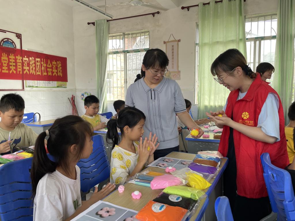 此次实践活动以绘制团扇、趣味剪纸、黏土手工等美育课程为主要内容。课上,志愿者们依托自己的专业特长,以趣味教学的形式为小学生讲解绘制技巧、进行授课,指导小学生完成作品的创作,并鼓励参与活动的小学生用色彩表达内心,用线条展现自我。小学生们认真听课、积极配合、用心绘制,现场氛围十分活跃。此外,他们积极向志愿者们寻求帮助,在志愿者的协助下,完成一个个别具一格的艺术作品。活动结束后,小朋友纷纷表示此次活动受益匪浅,并对未来开设公益美育服务课程寄予期许。