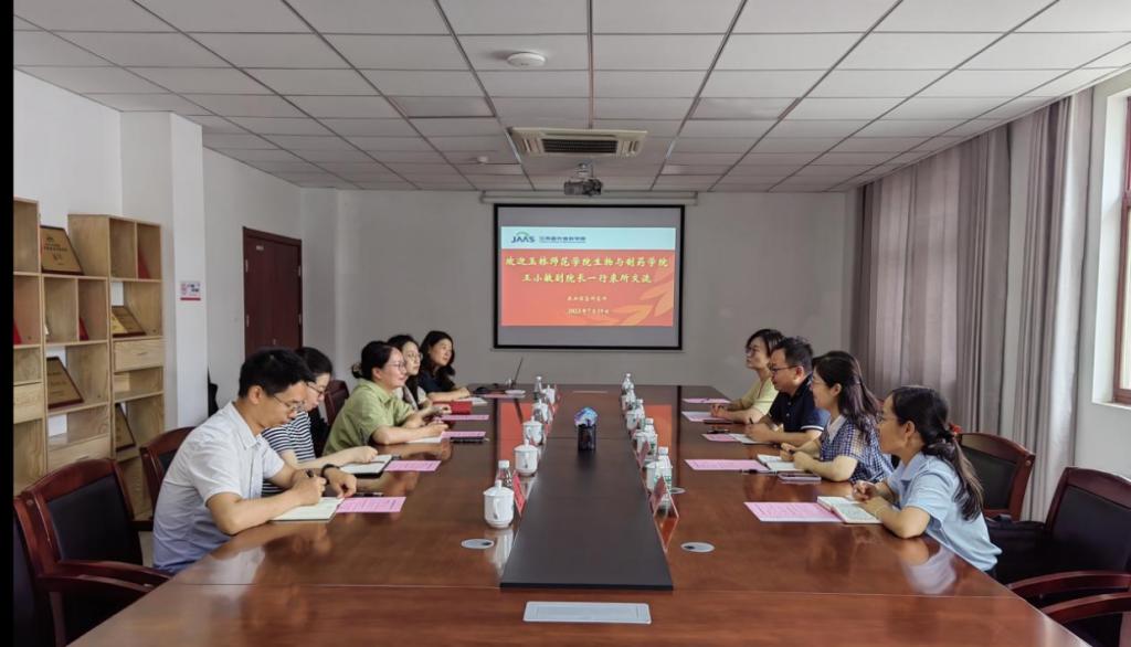 7月19日—20日,生物与制药学院副院长王小敏,教务处副处长邓旭带队赴江苏省农业科学院农业信息研究所和南京农业大学农学院开展调研交流。
