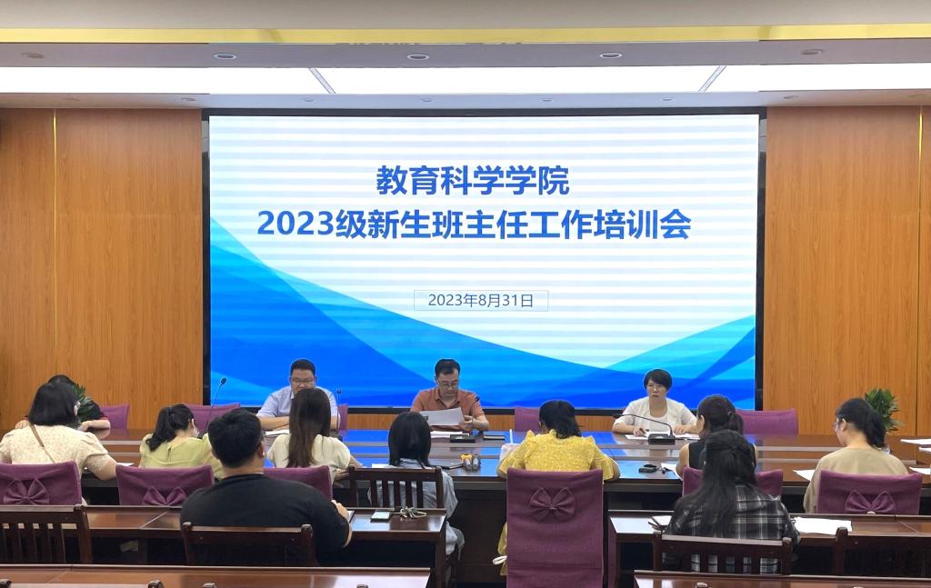 为确保学院迎新工作顺利展开,帮助新生班主任熟悉工作内容及工作重点,8月31日下午,教育科学学院在我校东校区明德楼学院会议室召开2023级新生班主任工作培训会,该院党委书记崔海波,院长陈庆文,党委副书记李尚芳及新生班主任参加培训会。