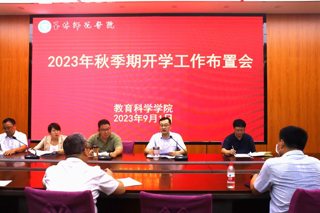为全面部署开学工作,更好地推进新学期各项工作有序开展,9月1日下午,教育科学学院于我校东校区明德楼学院会议室召开2023年秋季期开学工作布置会。该院领导班子成员及全体教职员工参加此会议,会议由该院党委书记崔海波主持。