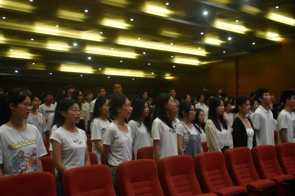 最后,学院领导、教师与全体2023级新生合唱校歌《播种阳光》,开学典礼落下帷幕。