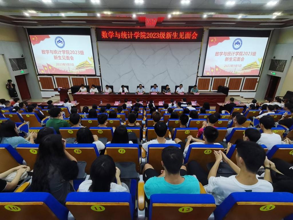 9月5日,数学与统计学院在我校东校区新民楼D101会议室召开2023级新生入学见面会。学院党委书记庞伟、副院长(主持全面行政工作)王培、党委副书记李秀英、副院长杨京开、党委专职组织员陈金梅等领导班子成员、辅导员、老生代表、新生班主任以及2023级新生参加。会议由李秀英主持。