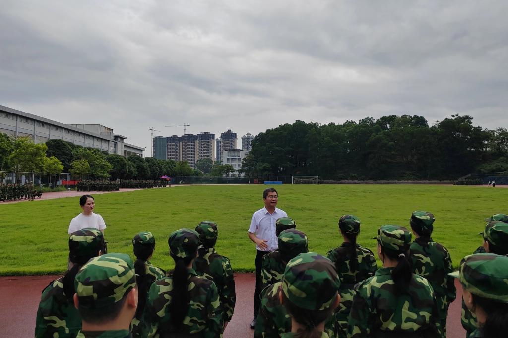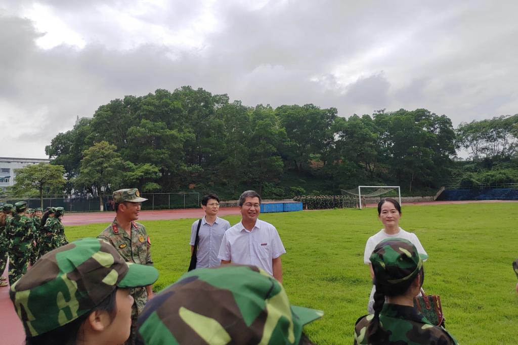 9月7日下午,音乐舞蹈学院党委书记何军、副院长蒋艳前往我校东校区东400米田径场慰问带训教官和参训新生。