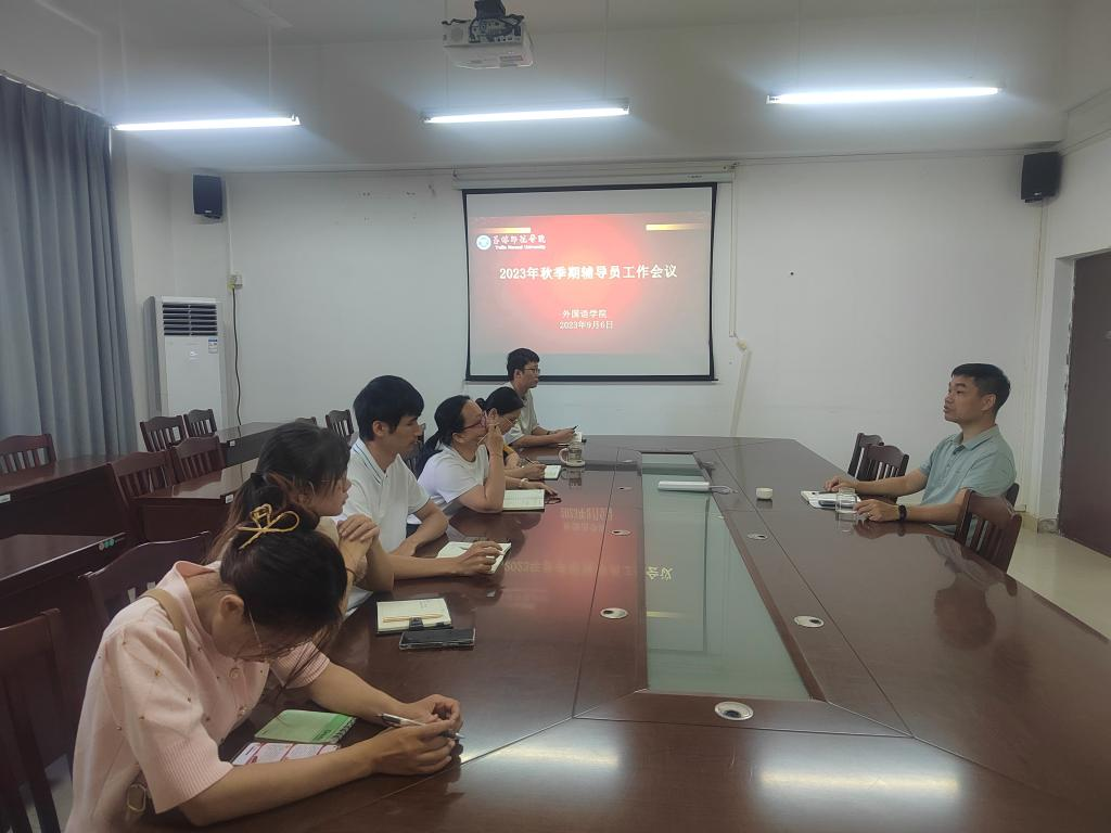 为进一步提升学生管理工作水平,营造良好的校风学风,9月6日,外国语学院于我校东校区厚德楼1-306会议室召开辅导员工作会议,会议由该院党委书记梁国初主讲,全体辅导员参加会议。