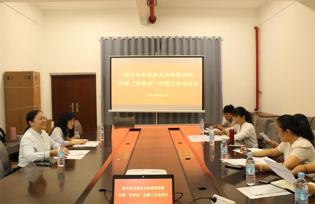 为确保2023年第一届全国学生(青年)运动会(以下简称“学青会”)广西玉林赛区各项筹办工作按计划高效推进,9月7日下午,我校在东校区新民楼D113会议室开展“学青会”志愿工作洽谈会。团玉林市委副书记陆红霞,团玉林市委宣传部部长李依莉出席会议,学校团委书记范良辰等领导老师参会。本次会议由范良辰主持。