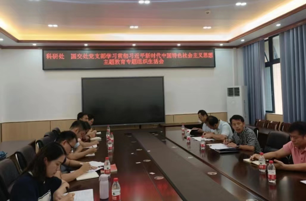 9月11日下午,科研处、国交处党支部在新民楼C213会议室召开学习贯彻习近平新时代中国特色社会主义思想主题教育专题组织生活会。会议由支部副书记宋永忠主持,全体支部党员参加会议。
