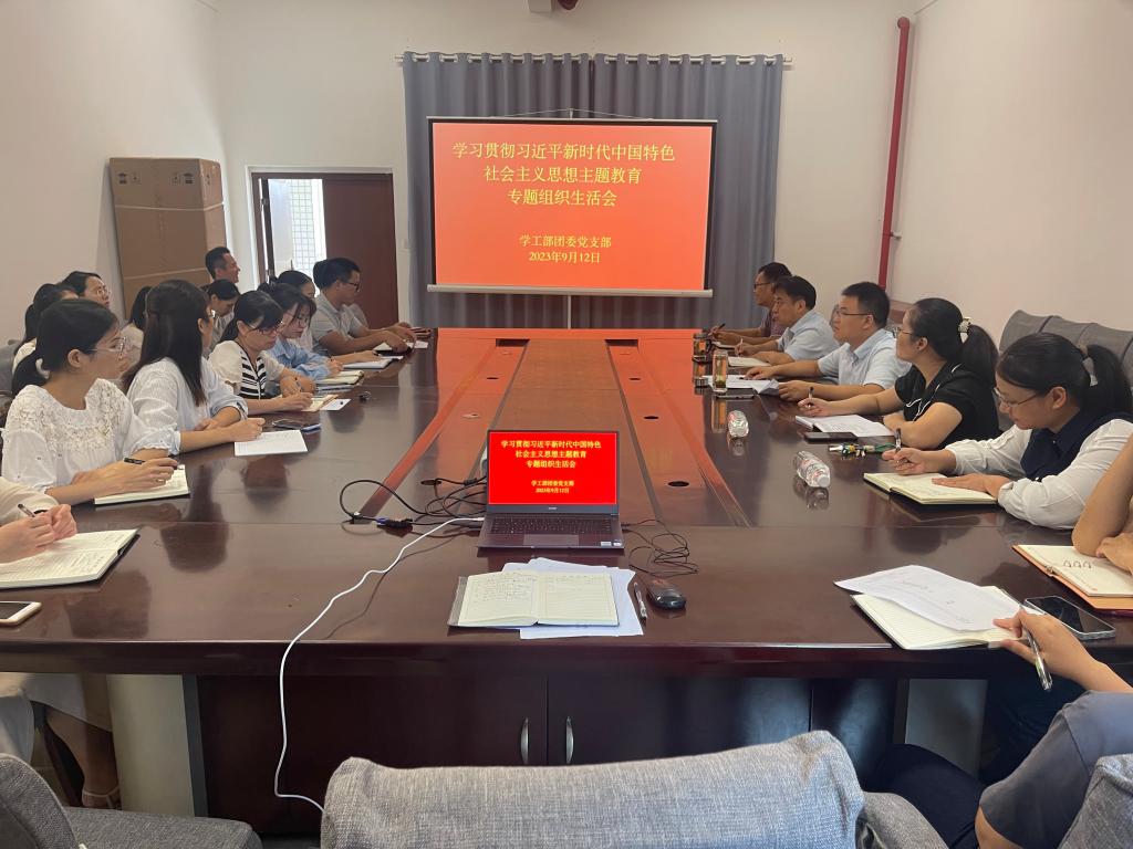 9月12日上午,学工部团委党支部于新民楼D113室召开学习贯彻习近平新时代中国特色社会主义思想主题教育专题组织生活会。会议由学工部团委党支部书记杨潇主持,党支部全体成员参加此次会议。