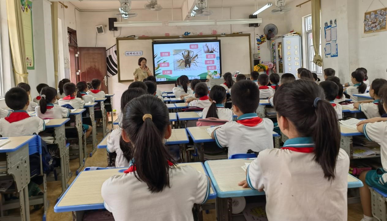 9月13日,活动在大芦小学教师庞燕华的语文汇报课中拉开序幕。她执教的课题是部编版四年级上册第三单元第11课《蟋蟀的住宅》(第二课时)。课堂中,她通过创设情境、复习旧知导入新课,分别设置找洞穴图说特点、找挖洞工具感悟情感两个探究活动,融合使用希沃白板、八桂教学通等信息技术丰富课堂形式。