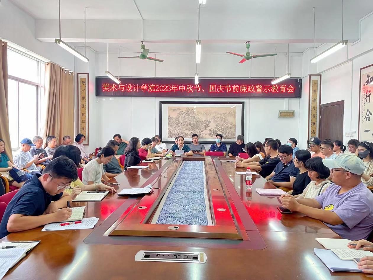 为进一步巩固拓展落实中央八项规定精神成果,确保节日期间风清气正,9月26日下午,美术与设计学院于我校东校区博学楼3407会议室召开2023年中秋节、国庆节前廉政警示教育会,该院党委书记黄培英、党委副书记严耀燕、副院长邱冬梅以及全体教职工参加会议,会议由严耀燕主持。