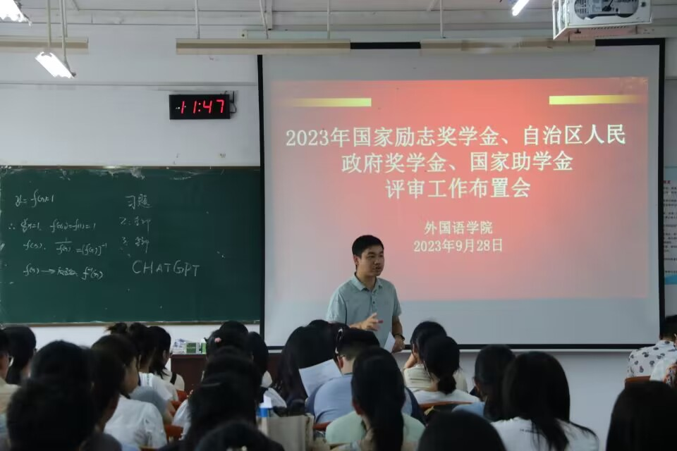 9月28日中午,外国语学院于我校东校区厚德楼1-301教室召开国家励志奖学金、自治区人民政府奖学金、国家助学金评审工作布置会,该院党委书记,辅导员、班主任以及各班学生代表参加会议。