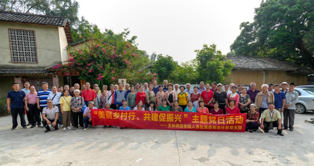 10月27日上午,人事处党委组织离退休五个支部赴北流市西埌镇木棉村开展“美丽乡村行、共建促振兴”主题党日活动。