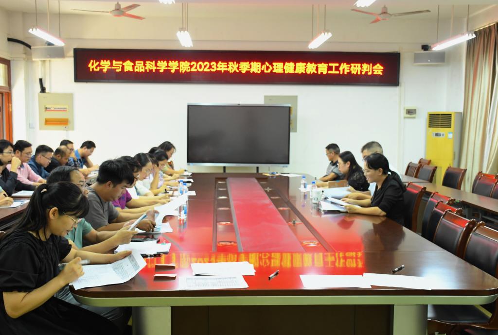 为全面了解并掌握学生心理健康状况,预防学生心理危机事件的发生,11月1日下午,化学与食品科学学院于我校东校区格物楼BA321学院会议室召开2023年秋季期学生心理健康教育工作研判会。该院党委书记何军,党委副书记刘里琳,学校心理健康与咨询中心专职教师,各班班主任及辅导员参会。