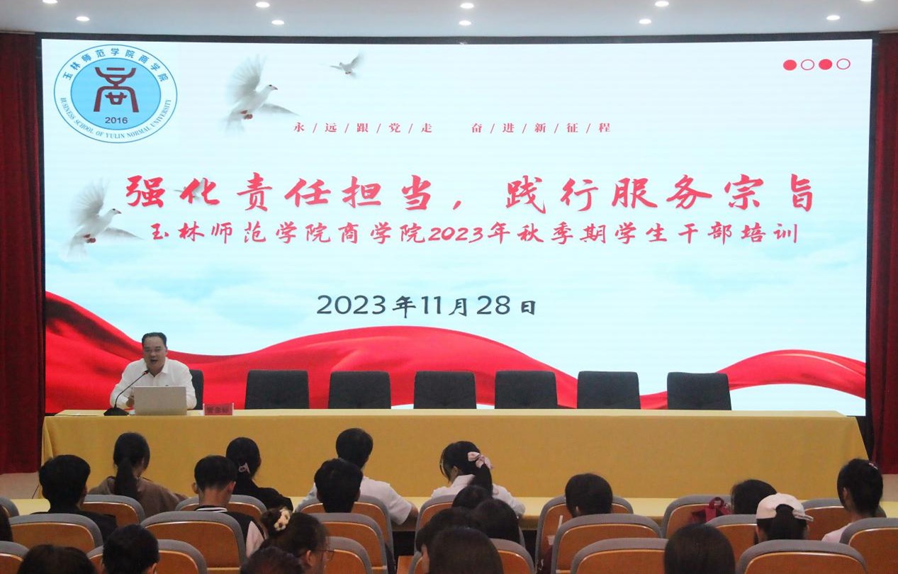 11月28日,商学院于我校东校区清源楼A106会议室召开以“强化责任担当,践行服务宗旨”为主题的学生干部培训会,该院团委学生会干部、各班班长、团支书、易班负责人和各学生社团会长及副会长们参加本次会议。培训会由该院党委书记管金标主讲。