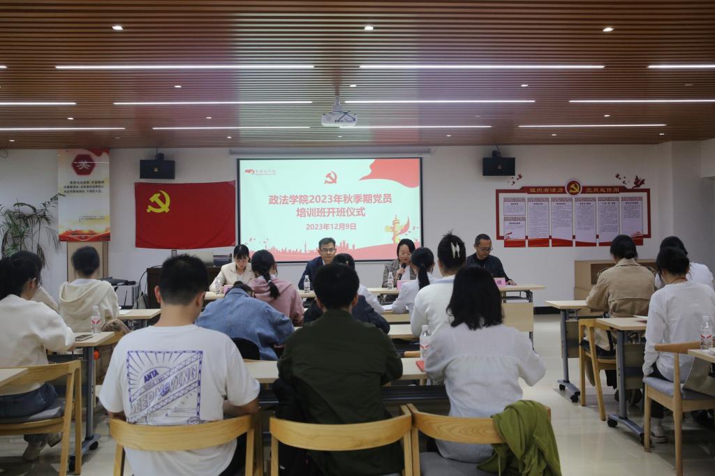 为深入学习贯彻习近平新时代中国特色社会主义思想和党的二十大精神,提高党员党性修养和能力素质。11月9日上午,政法学院于我校东校区挂榜书院举行2023年秋季期党员培训班开班仪式,政法学院党委书记陈一栋、党委专职组织员、学生第一党支部书记、学生第二党支部书记出席开班仪式。