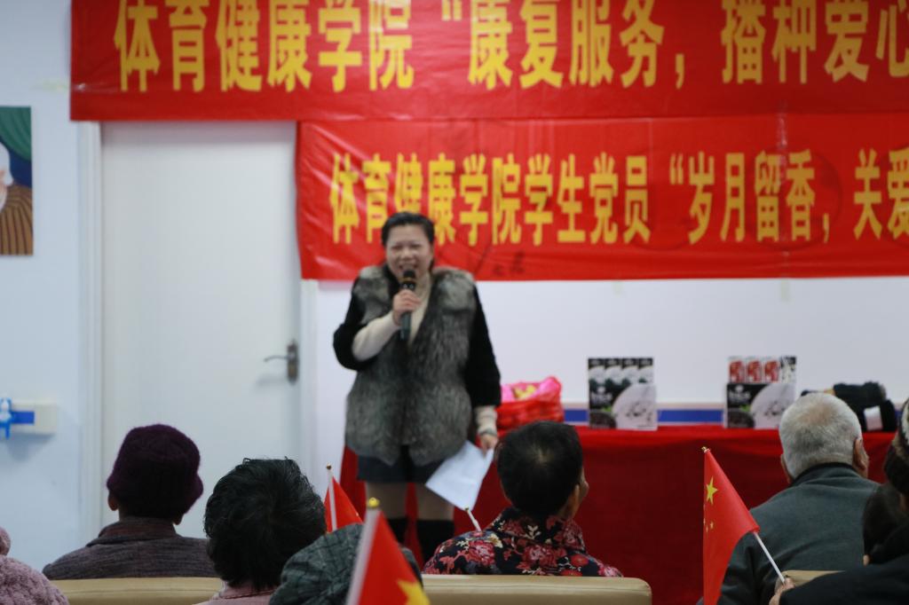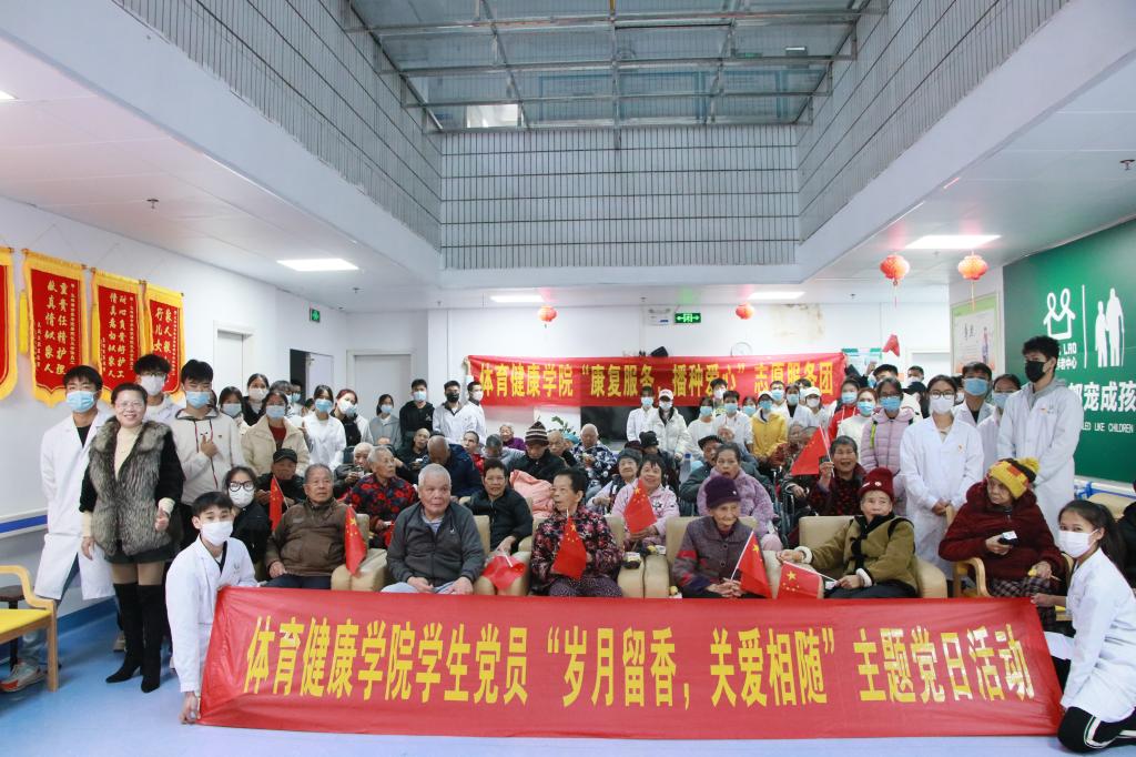为学习弘扬中华民族传统美德,传承孝道文化,提高老年人的生活质量,推动基层党支部走进基层,贴近群众,充分发挥党员的先锋模范作用,近日,学校体育健康学院全体学生党员、康复协会部分志愿者前往玉林瑞合养老院开展党建带社团——体育健康学院学生党员“岁月留香,关爱相随”主题党日活动。活动由该院各学生党支部和康复协会联合组织开展,该院辅导员和党支部书记负责带队,共有60余人参与志愿服务活动。