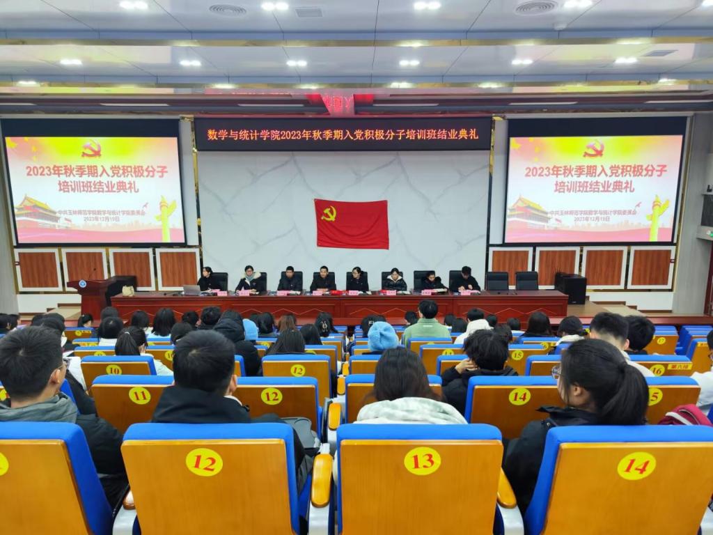 12月19日,数学与统计学院于我校东校区新民楼D101教室举行2023年秋季期入党积极分子培训班结业典礼,该院党委书记庞伟、党委副书记李秀英、团委书记、学生党支部书记、专职辅导员及第十五期入党积极分子参加典礼,由学生第一党支部书记主持。
