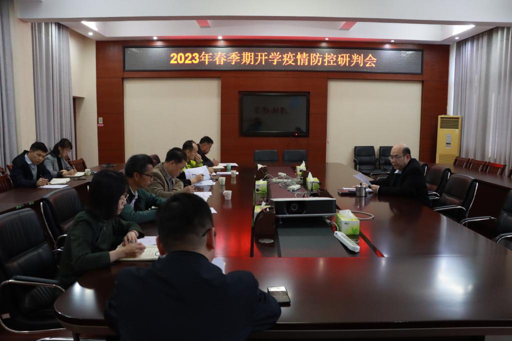 2023年春季学期是新冠病毒感染实施“乙类乙管”后第一个开学季。2月20日下午,学校副校长黄映然主持召开学校2023年春季期疫情防控研判会,党委办公室(院长办公室)、人事处、学生工作部(处)、保卫处、后勤基建处、国际交流处负责人参加会议。